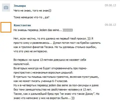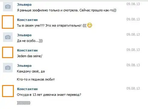 А это окончательно убило интерес. Контакт не пишет время, но между моей фразой Jedem Das seine и ее переводом прошло не больше 7 секунд... Даже перевести через гугл она бы не успела...