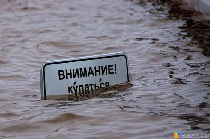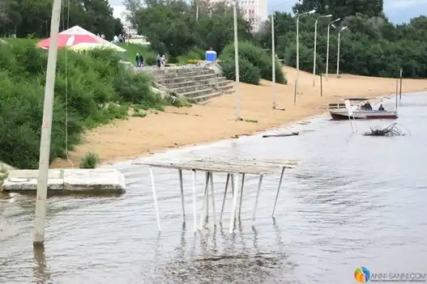 Эта табличка, стоящая не на пляже, а уже на лестнице с него на полутораметровом столбе, еще пару дней назад торчала из воды весьма внушительно. Сегодня, кстати, ее уже скрыло под водой.