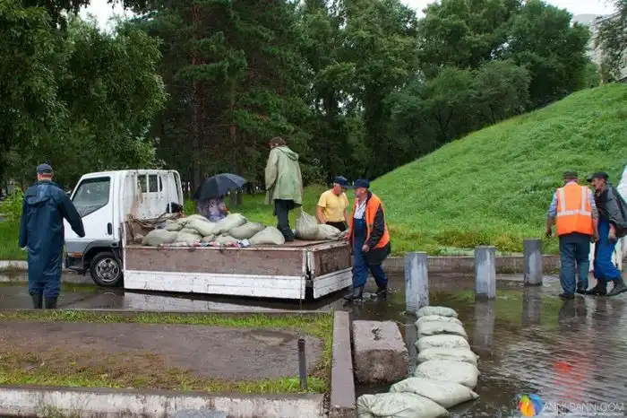 Еще один "проблемный" микрорайон, который при дальнейшем подъеме воды, по оценкам специалистов, рискует стать островом - это "Строитель". Тут двойная дамба, но первая из них, песочная, водой уже пройдена.