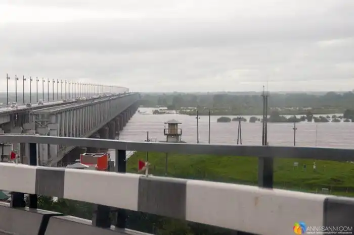 Через амурский мост едем на левый пологий берег, посмотреть как дела там.