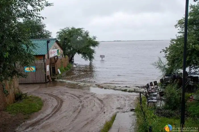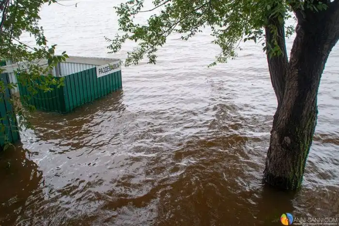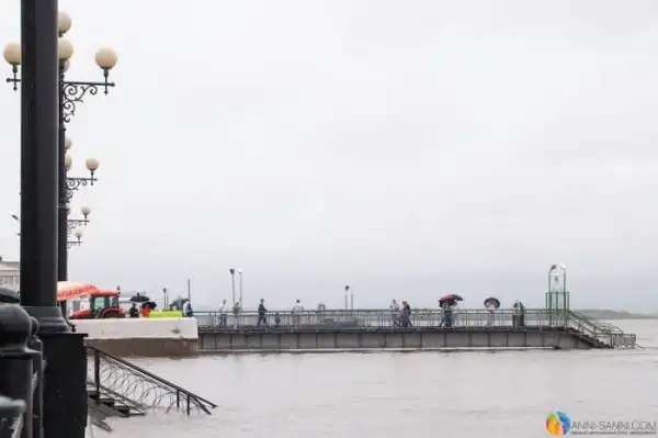 Кроме воскресных фотографий Хабаровска - у меня есть еще субботние фото с набережной Комсомольска-на-Амуре. Там набережную пока еще не полностью затопило, но всё впереди - туда по-настоящему большая вода придет позже... В Комсомольске обещается "до восьми метров". Трасса "Хабаровск-Комсомольск" также защищается дамбами, есть вероятность, что ее подтопит озеро Гасси, но будем надеяться, что нет.