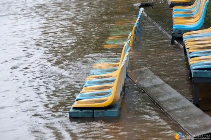 Подтоплена и сцена, расположенная там, и первые ряды сидений перед ней.