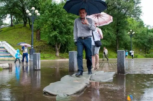 Конечно, видеть, как вода подбирается вплотную к Набережной - немного... жутковато что ли. Понимаешь, что вот если затопит прогулочную часть Набережной - ничего страшного не будет, не это главное, куда важней дома, дороги, те же огороды и так далее. Но просто здесь то, насколько разлило Амур, видно наглядно.