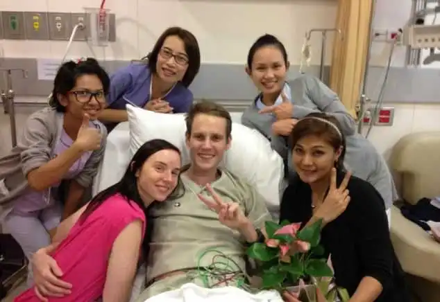 В течение нескольких дней он потерял 12 килограммов и был переведен в больницу в Бангкоке, Таиланд, где его подключили к системе жизнеобеспечения.