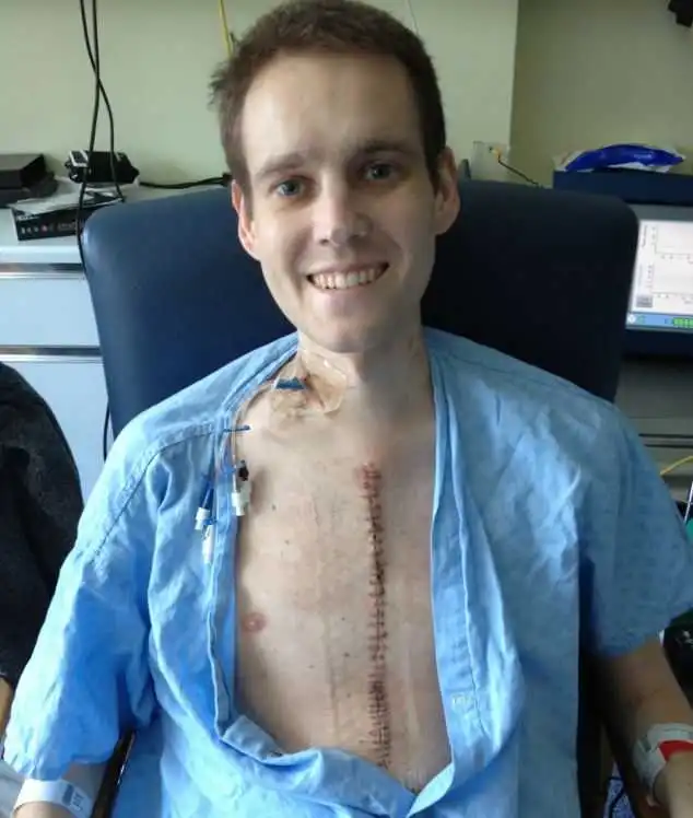 В настоящее время мужчина стабилен и находится в больнице в ожидании пересадки сердца.