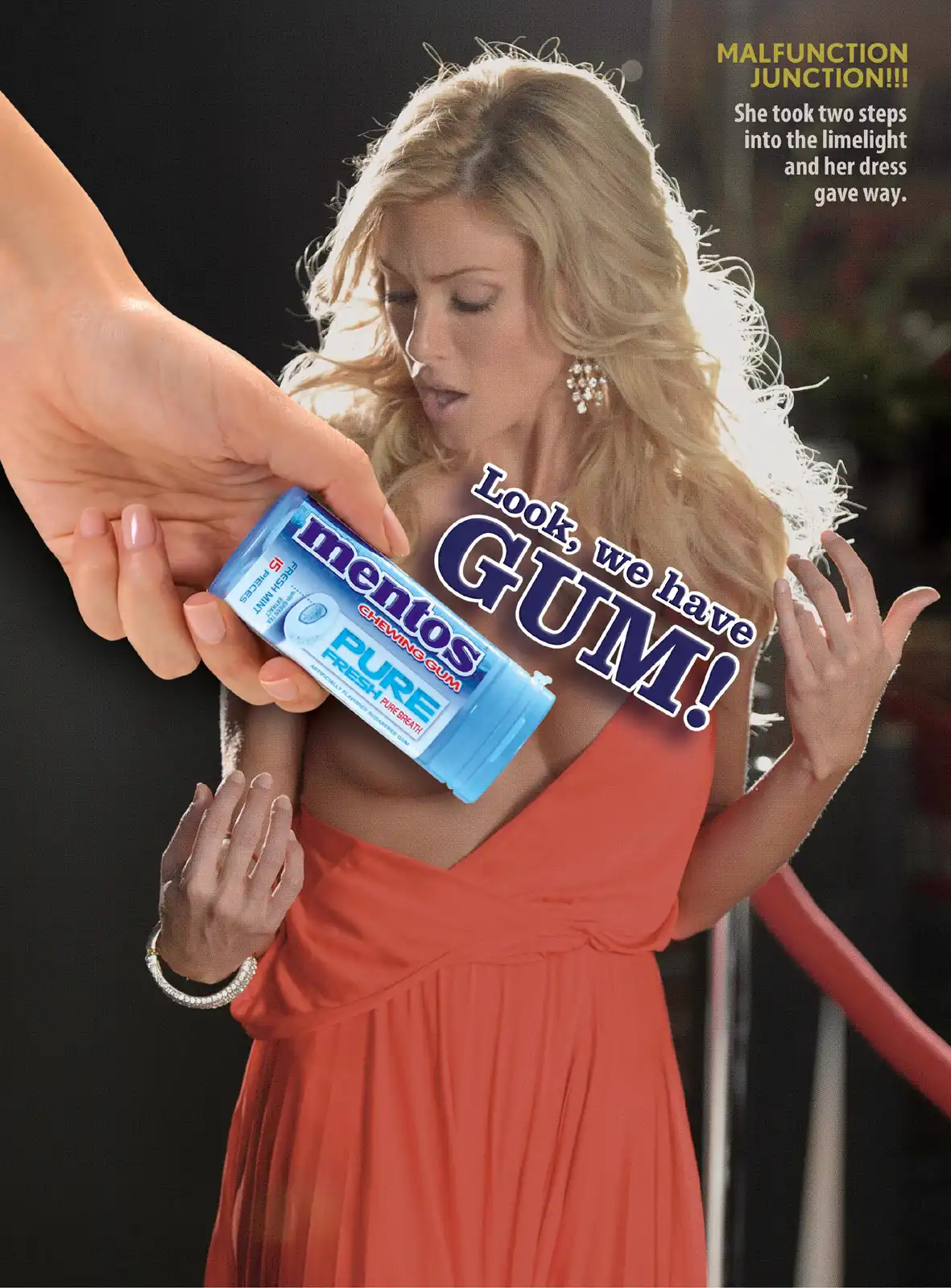 Например, основой посыл этой фотографии – не прекрасные формы модели, а гамбургер из сети быстрого питания Carl’s Jr.’ Но кого это интересует?
