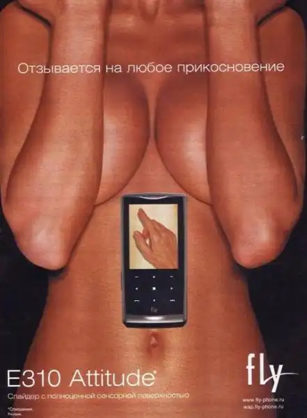 Старая реклама сенсорного телефона. Тогда эта технология было в новинку, но ассоциации до сих пор те же.