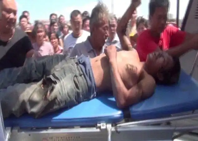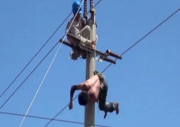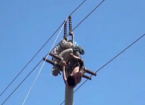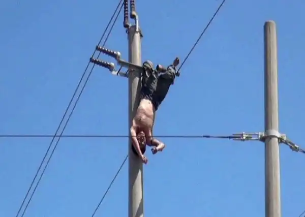 28-летний китаец, предположительно слабоумный, залез на 10-метровый столб ЛЭП. Наверное хотел взглянуть на бренный мир свысока, но не сложилось - он схватился за провод и получил сильнейший удар. Потеряв сознание, он зацепился ногой за металлическую перекладину, которая и спасла ему жизнь. Спасателям удалось его снять прежде, чем он упал бы. Отправили в больницу, а не в морг, как в большинстве подобных случаев.