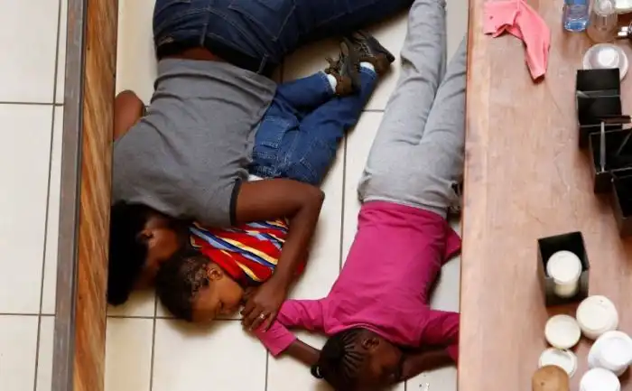 Увеличьте это фото и вы увидите,что мамаша спит с детьми, а не прячется за стойкой бара. Если бы она даже пыталась спрятаться, то оператор сверху, конечно, никого бы не выдал..