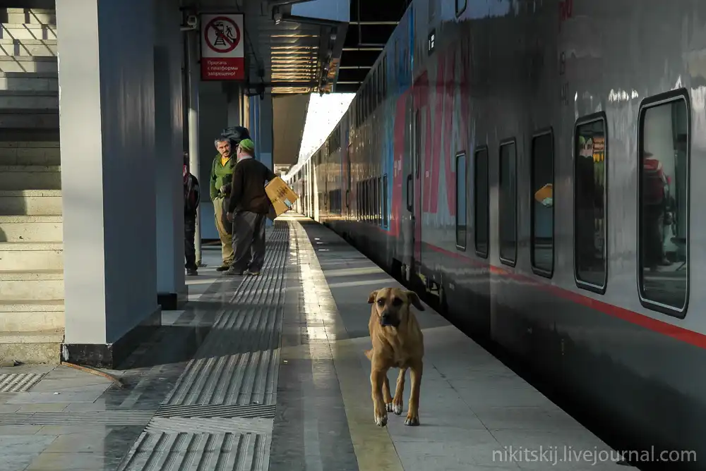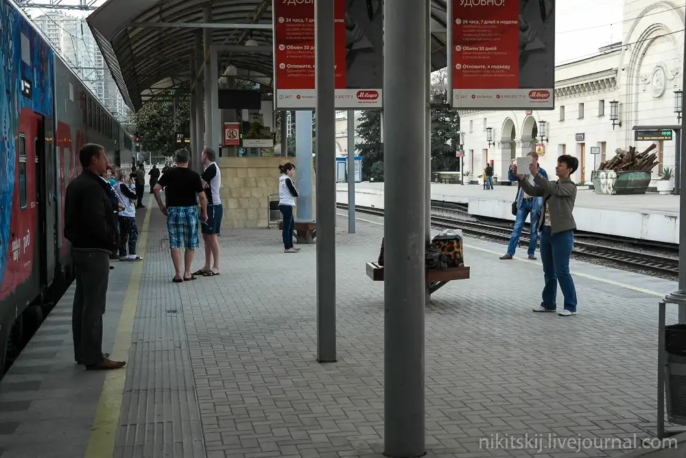 Прибыли в Адлер. Обратите внимание на разницу в высоте вагонов.