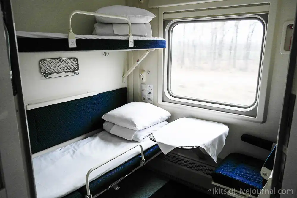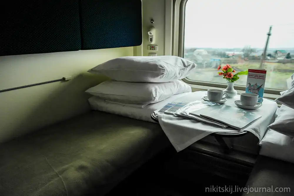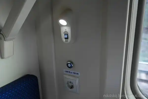 В купе имеются индивидуальные электрические розетки для зарядки мобильного телефона или ноутбука. Две штуки!