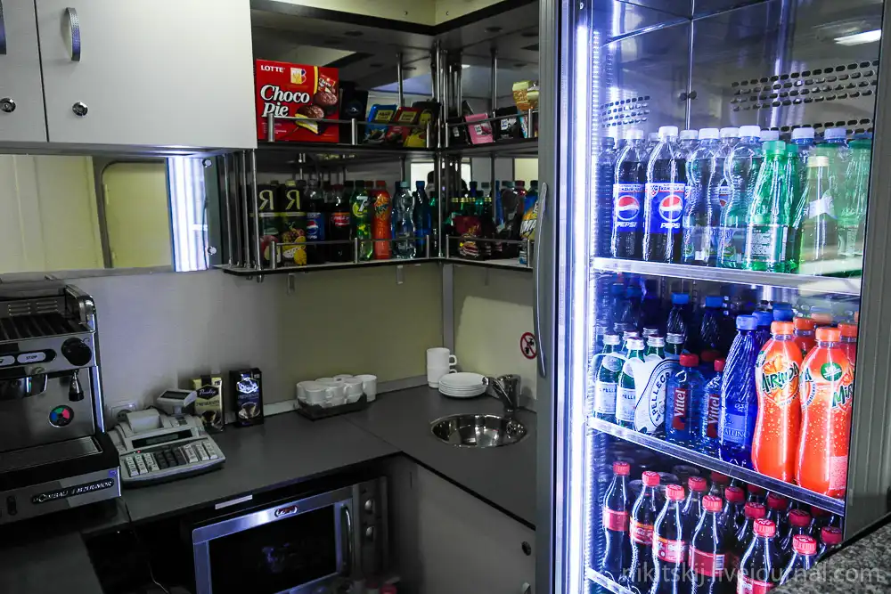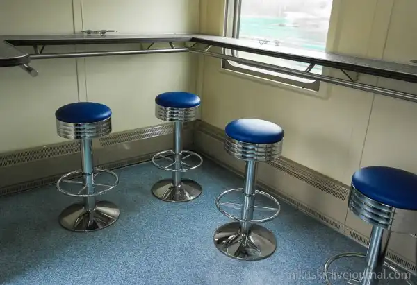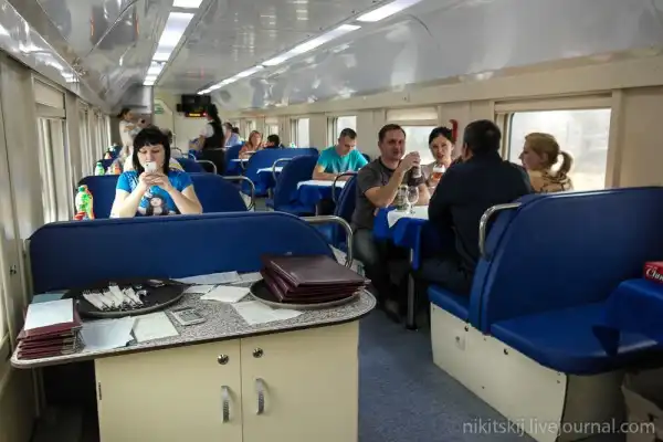 В составе поезда имеется и вагон ресторан. На втором этаже - обеденный зал на 48-50 посетителей
