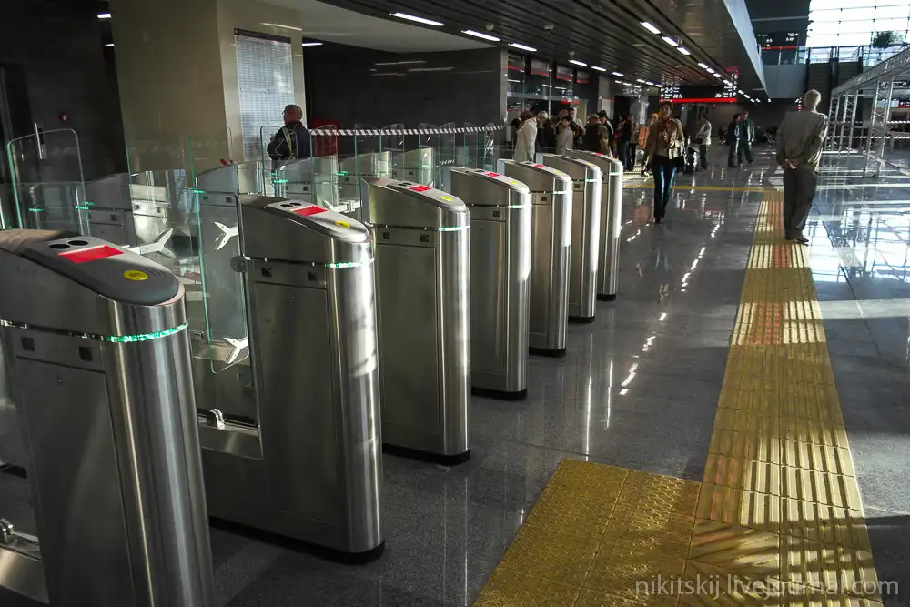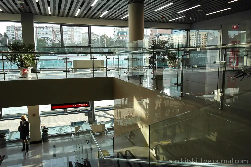 Общая площадь семи уровней терминала составляет почти 30 тыс. кв. м, пропускная способность превышает 15 тыс. человек в час.