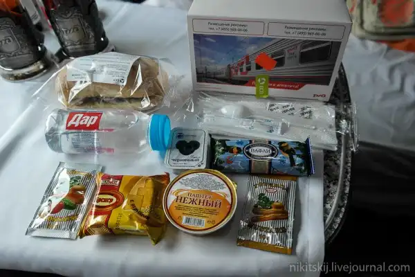 Будете удивлены, но в стоимость билета включен сухой паек. Пришлось "рисковать" здоровьем и тестировать. Выжил! Все оказалось съедобным, хотя куриный паштет я бы заменил-)