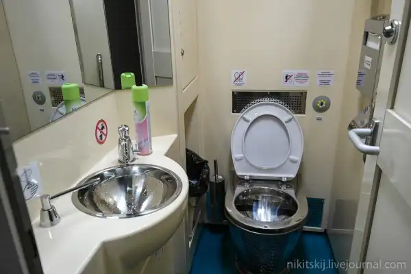 Все вагоны оборудованы тремя биотуалетами, которыми можно пользоваться во время стоянок. У кого-то читал такую статистику. В обычном купейном вагоне 36 мест и 2 туалета. Получается 1 туалет на 18 пассажиров. В двухэтажном вагоне 64 места и 3 туалета - 1 туалет на 21 пассажира. Якобы туалеты будут загруженнее на 15%.