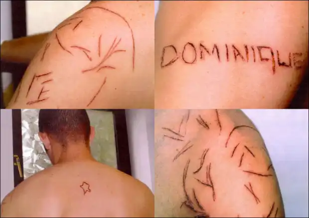 Один человек проснулся и обнаружил, что на его плече ножом вырезано имя. Этот мужчина по имени Уэйн Робинсон получил травму от рук Доминики Фишер, вырезавшей своё имя на предплечье парня.