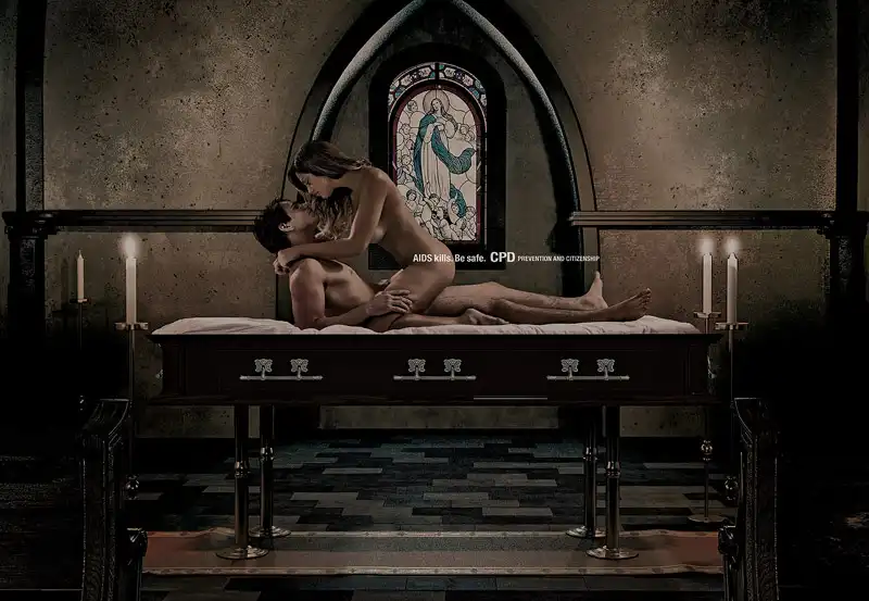 Социальная реклама из Бразилии сообщает «СПИД убивает. Защищай себя»