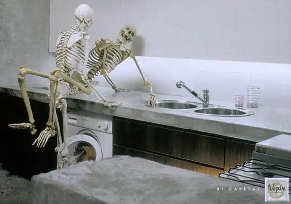 «Прыгать вниз без защиты опасно» предупреждает Бельгийская реклама 2009 года.