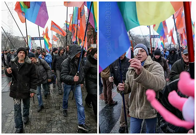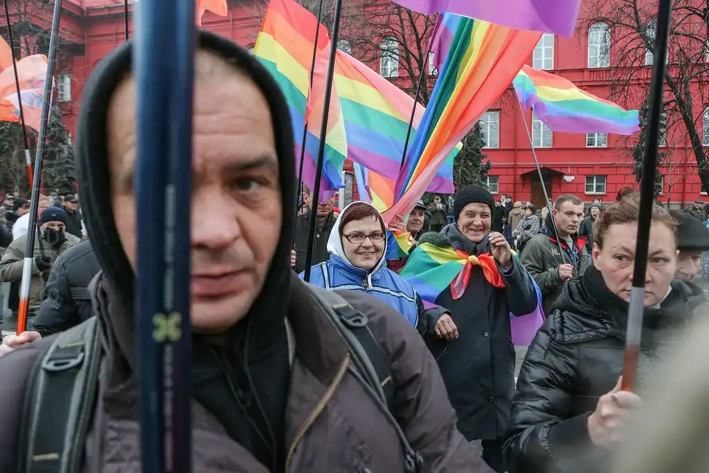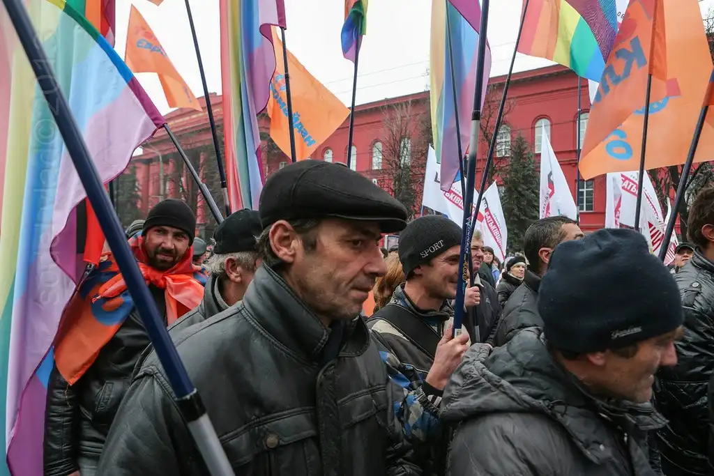 Посмотрите на эти одухотворенные лица под радужными флагами. Этих людей, задействованных в провокационном шествии с целю дискредитации европейской интеграции Украины, организаторы попытались выдать за представителей украинского гей-сообщества.