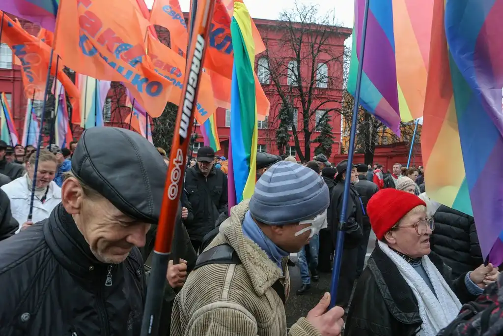В провокационном “гей-параде” приняли участие люмпены и пожилые люди.