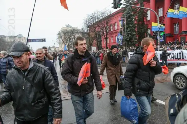 Эти кадры были сделаны в Киеве, 24-го ноября во время шествия с флагами на Евромайдане.