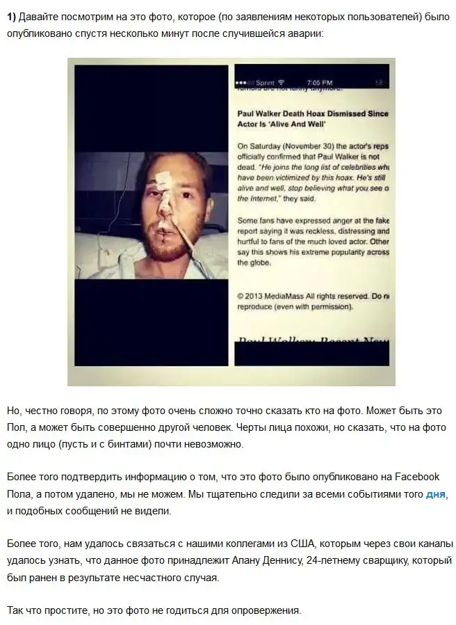 После того, как в сети появилась информация о том, что звезда фильмов "Форсаж" Пол Уокер погиб в ДТП, в этой истории начали появляться весьма странные факты о опровержения.