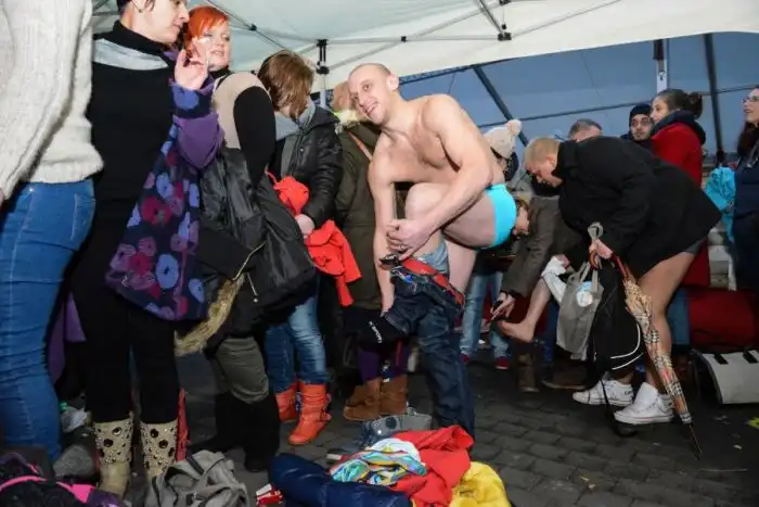 Довольно необычную акцию придумал владелец магазина одежды в Бельгии, который пообещал первым 100 посетителям, явившимся в его магазин в нижнем белье, бесплатно два предмета одежды ;)