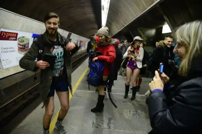 Киевляне прокатились на метро в нижнем белье