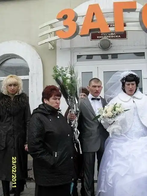 23 февраля 2011 года в ЗАГС города Киселевска пришла влюбленная пара, решившая связать свою любовь узами брака. Немало времени прошло с тех пор, и я искренне надеюсь, что у жениха и невесты семейная жизнь сложилась удачно. А для вас задачка на внимательность — найди на фотографиях маму жениха. Уверен, что все вы справитесь довольно быстро.
