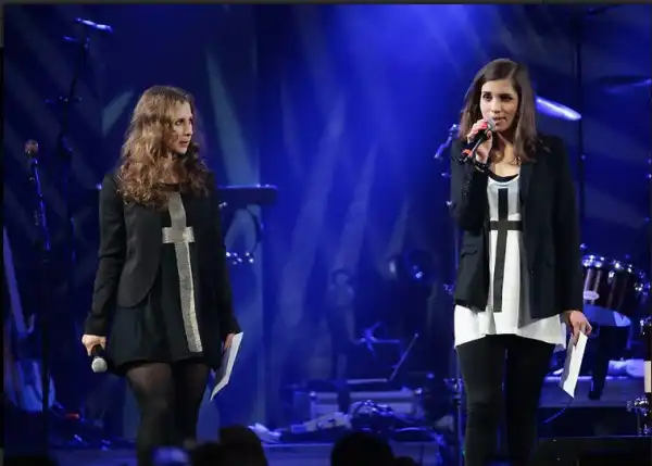 В Нью-Йорк, вечер провели в компании знаменитостей, в числе которых были Йоко Оно и Роджер Уотерс. Девушки дали интервью The New York Times, в котором не исключили, что когда-нибудь будут баллотироваться на политические посты в России. Кроме того, они успели появиться на шоу Стивена Кольбера Colbert Report, где обсудили время, проведенное в тюрьме, и права геев в России. В частности, когда Кольбер спросил, за что их посадили в тюрьму, девушки ответили: "За то, что спели веселые песни в храме". Также Надежда Толоконникова и Мария Алехина собрали большую пресс-конференцию в офисе Amnesty International. В ближайшие дни они планируют встретиться с американскими правозащитниками и посетить американские тюрьмы.