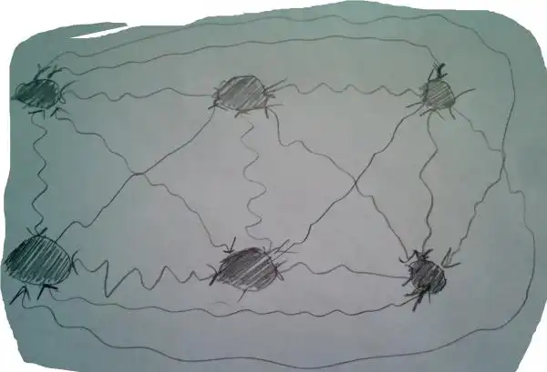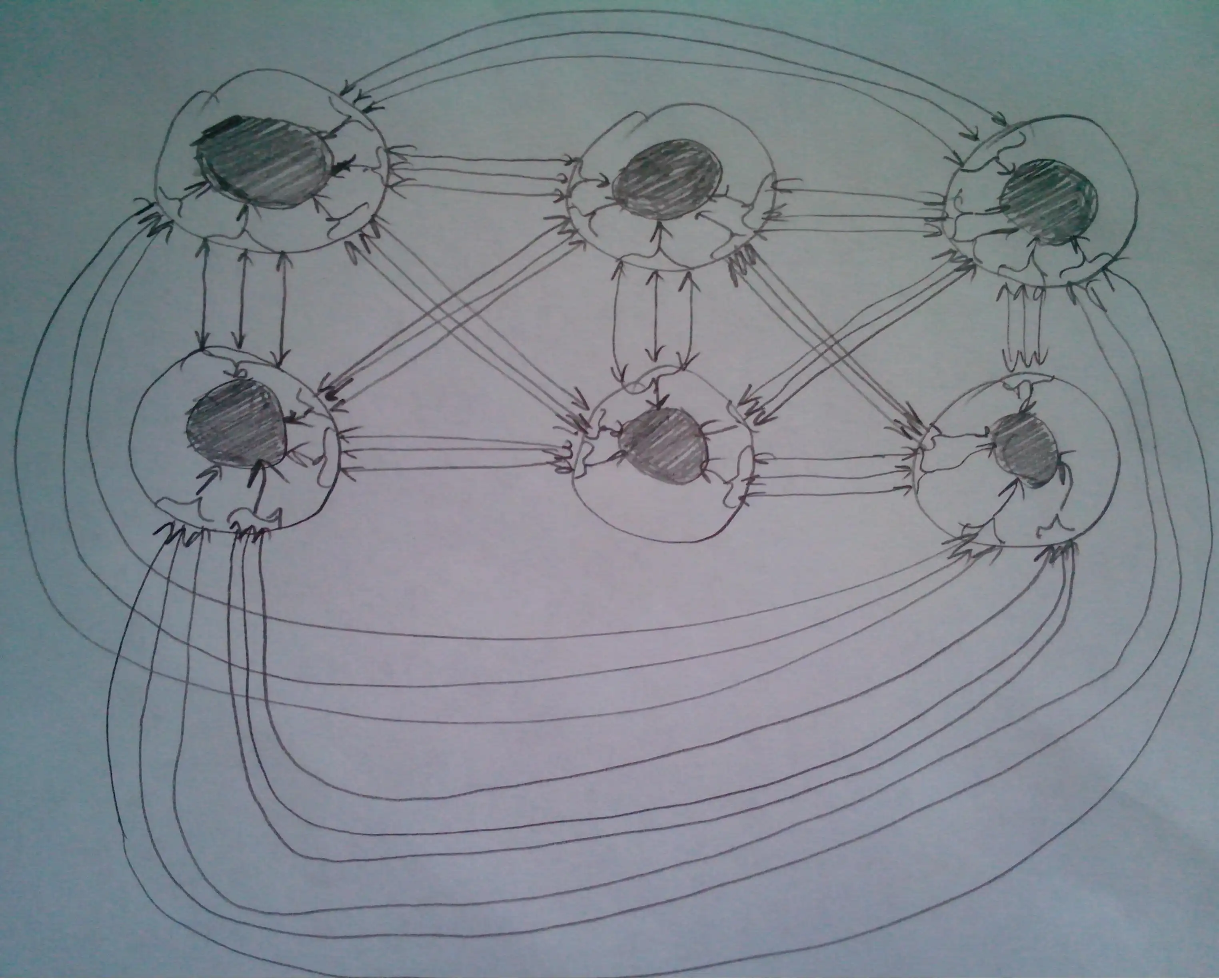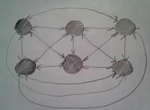 Рисунок описывает простейшую форму организации.В данной организации состоит 6 членов.Все они общаются друг с