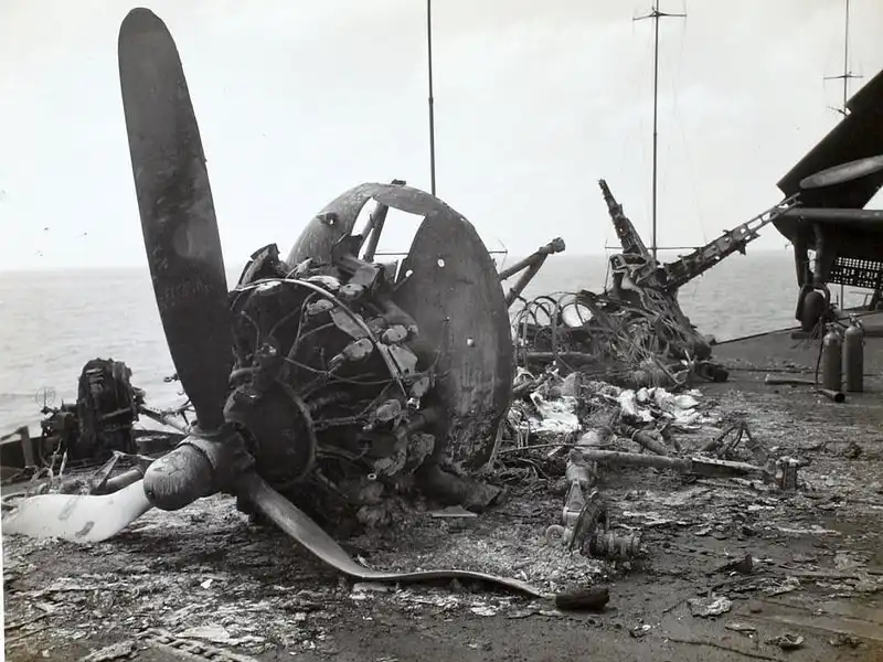 В этой атаке двух камикадзе погибло 372 человека, 264 раненых. Авианосец был отправлен на ремонт, восстановлен в 1950 году и служил до 1966 года в разных качествах