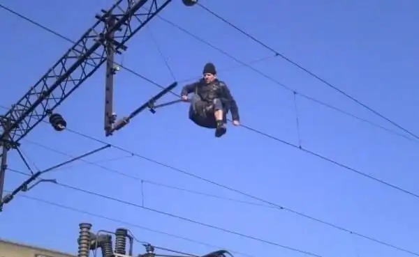 21 февраля на станции Гаи Ситенские Ровненской области на крышу электрички выбрался пассажир. Он потребовал, чтобы поезд развернулся и поехал в Киев на Евромайдан. После полученного отказа мужик забрался на провода - наверное решил по ним до столицы добираться. Линии обесточили и мужика все-таки сняли.