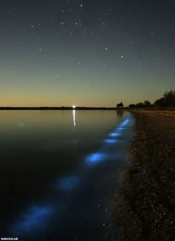 Озера Джипсленд – это комплекс озер, болот и лагун на востоке штата Виктория, площадью около 600 квадратных километров. Летом 2008 года в озерах наблюдалась необычно высокая концентрация организмов Noctiluca scintillans (еще известно под названием Ночесветки), которые под воздействием некоторых механических или химических факторов имеют свойство к люминесценции. В благоприятных условиях Джипсленда (то есть под воздействием «некоторых факторов») ночесветки «включали» внушительную по размерам красивую сине-голубую подсветку.