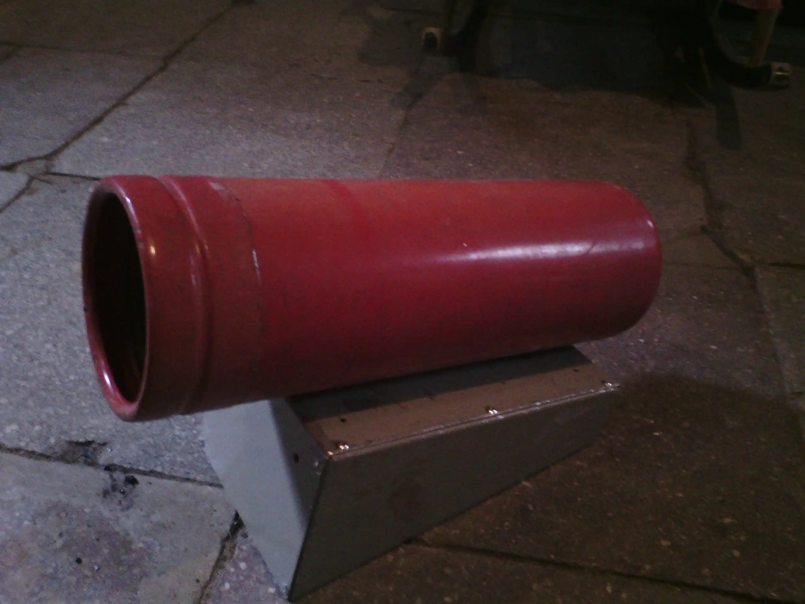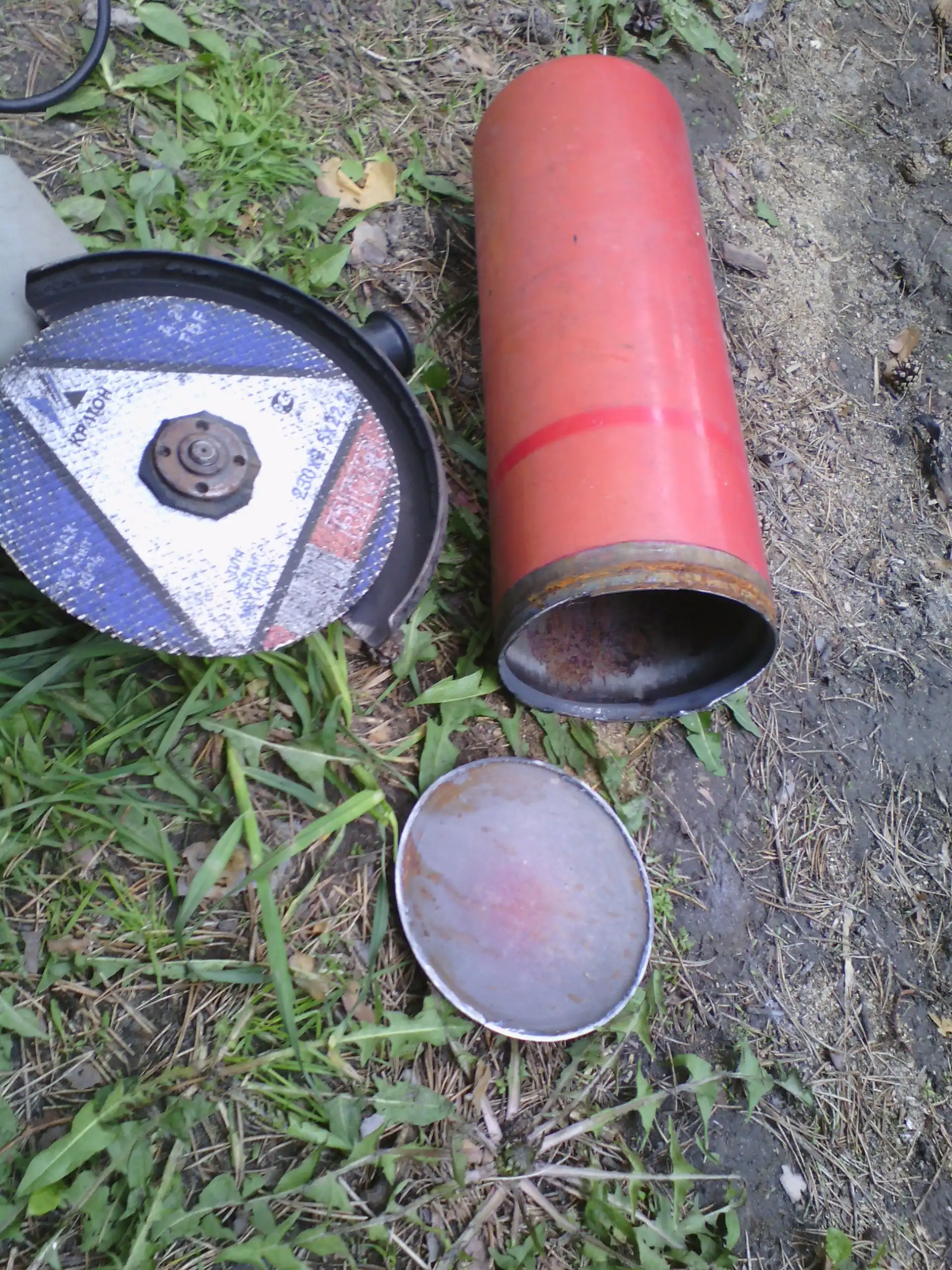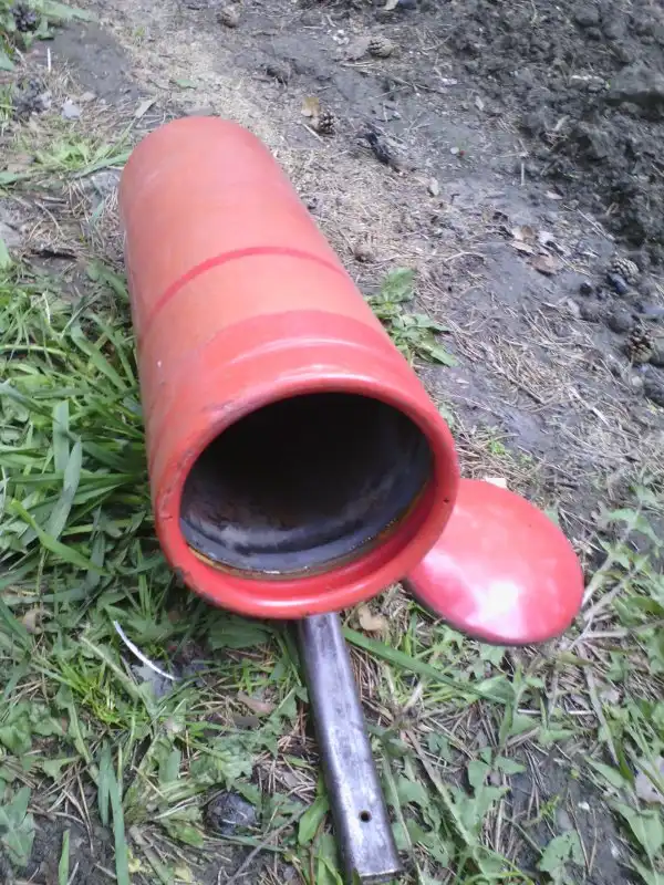 1. Берём старый огнетушитель и сбиваем с него подставку: