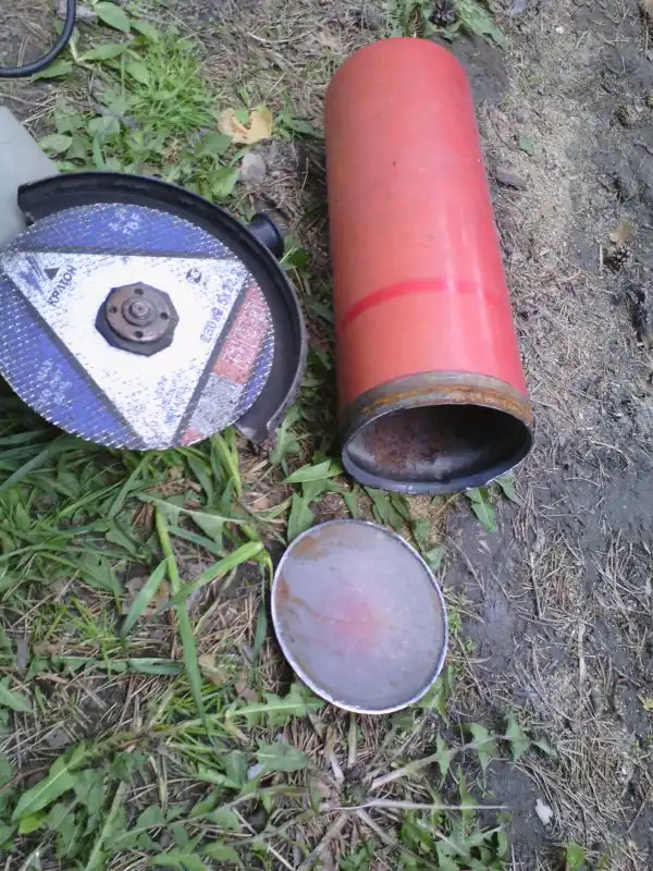 2.Отпиливаем дно огнетушителя: