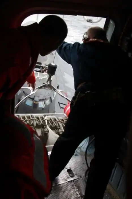 Хотя 11-метровый катер относится к классу "море", он выдерживает лишь полутораметровые волны. Однако утром волны достигали вышины в три метра, ветер усилился до 15 м/с. Из-за этого катер изменил курс, но по ряду причин не мог дойти до берега, до него оставалось ещё около 60 километров. Между тем, топливо было на исходе, требовалась немедленная дозаправка, иначе возникала угроза опрокидывания катера.