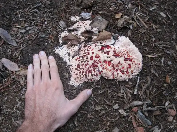 Этот гриб выглядит как кровоточащая, деформированная пастила. Он вырабатывает пузыри, наполненные красной жижей, которые содержат пигмент, обладающий теми же качествами, что и гепарин, антикоагулянт. Этот гриб также называют «клубника и сметана», «зуб с красным соком» и «зуб дьявола». Сок внутри пузырей содержит антикоагулянт под названием атроментин, который похож на гепарин. Атроментин, как и гепарин предотвращает свертывание крови.