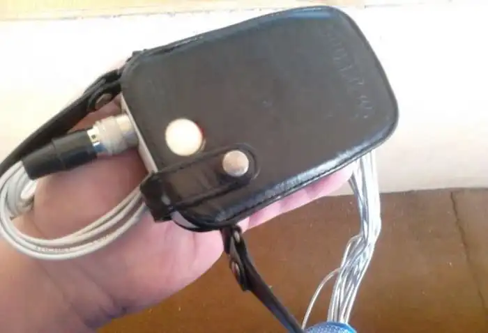 Прибор одевается через плечо и от него идут проводки с датчиками, которые прикрепляются к груди. Ты с ним ходишь целый день, делаешь все как обычно, он не мешает. А через сутки прибор снимают и расшифровывают данные.