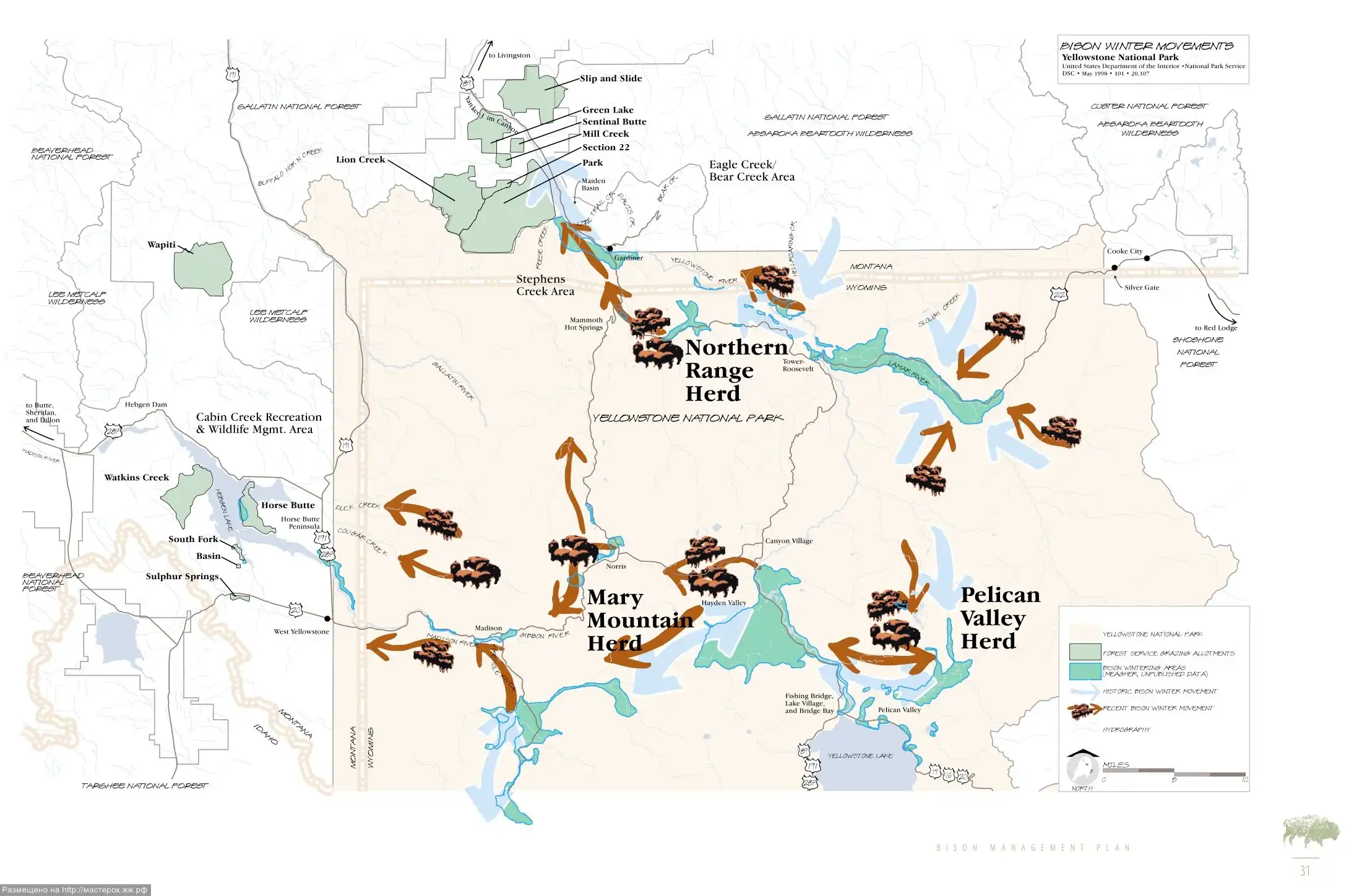 Судьба бизонов очень трагична. К началу XVIII в. Ареал бизонов был огромен. Популяция бизонов составляла порядка 60 миллионов особей. Ни охота индейцев, ни отстрел бизонов первыми поселенцами из Старого света не могли повлиять на всю популяцию. А вот в 30-х годов XIX века уже началось поголовное истребление животных.