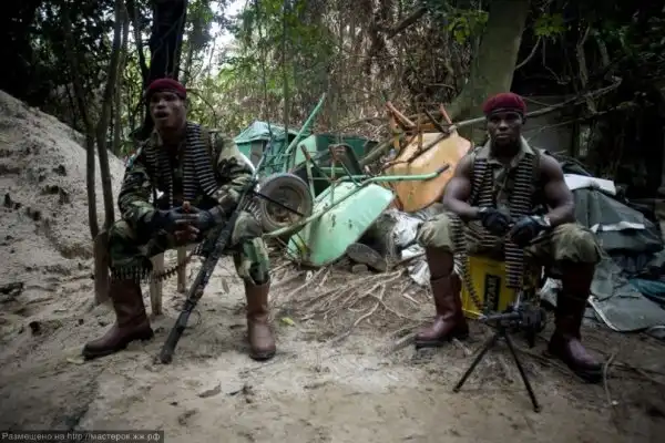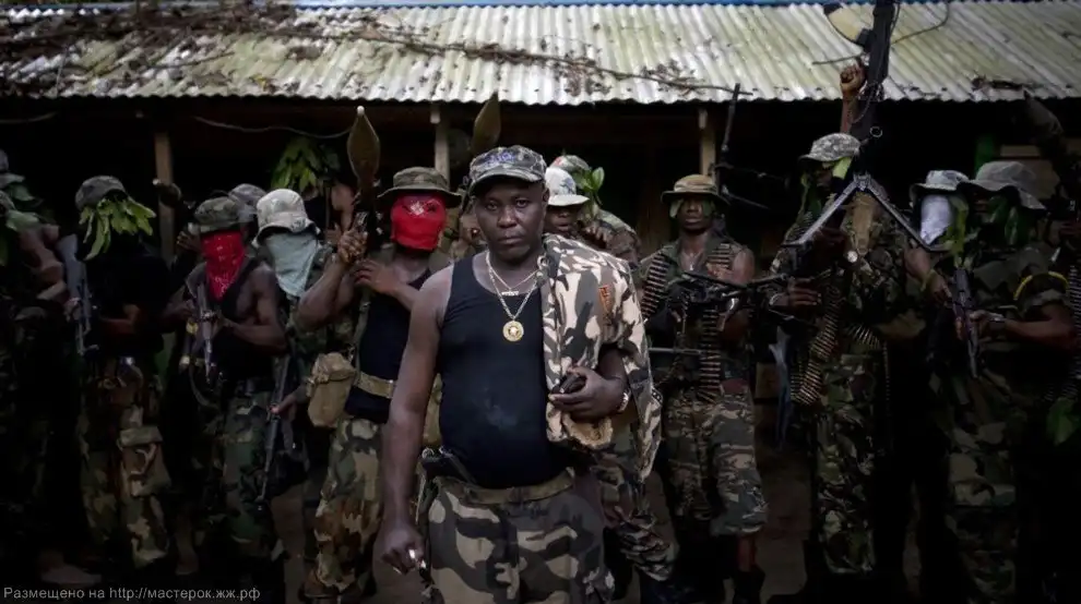 Обычным явлением для этой страны являются пираты. Нефтяные пираты. Лагерь №9 Движения за эмансипацию реки Нигер (MEND) находится в глубине мангровых лесов, и его ошибочно можно было бы принять за тихую рыбацкую деревушку, если бы не пулеметы и здоровенный бугай, конфискующий телефоны у репортеров. В лагере кто-то бродит в поношенной камуфляжной одежде с автоматами Калашникова и реактивными гранатометами, кто-то смотрит старый телевизор. В этот период официального прекращения огня «мальчики» развлекаются, устраивая между собой боксерские поединки или попивая пиво.