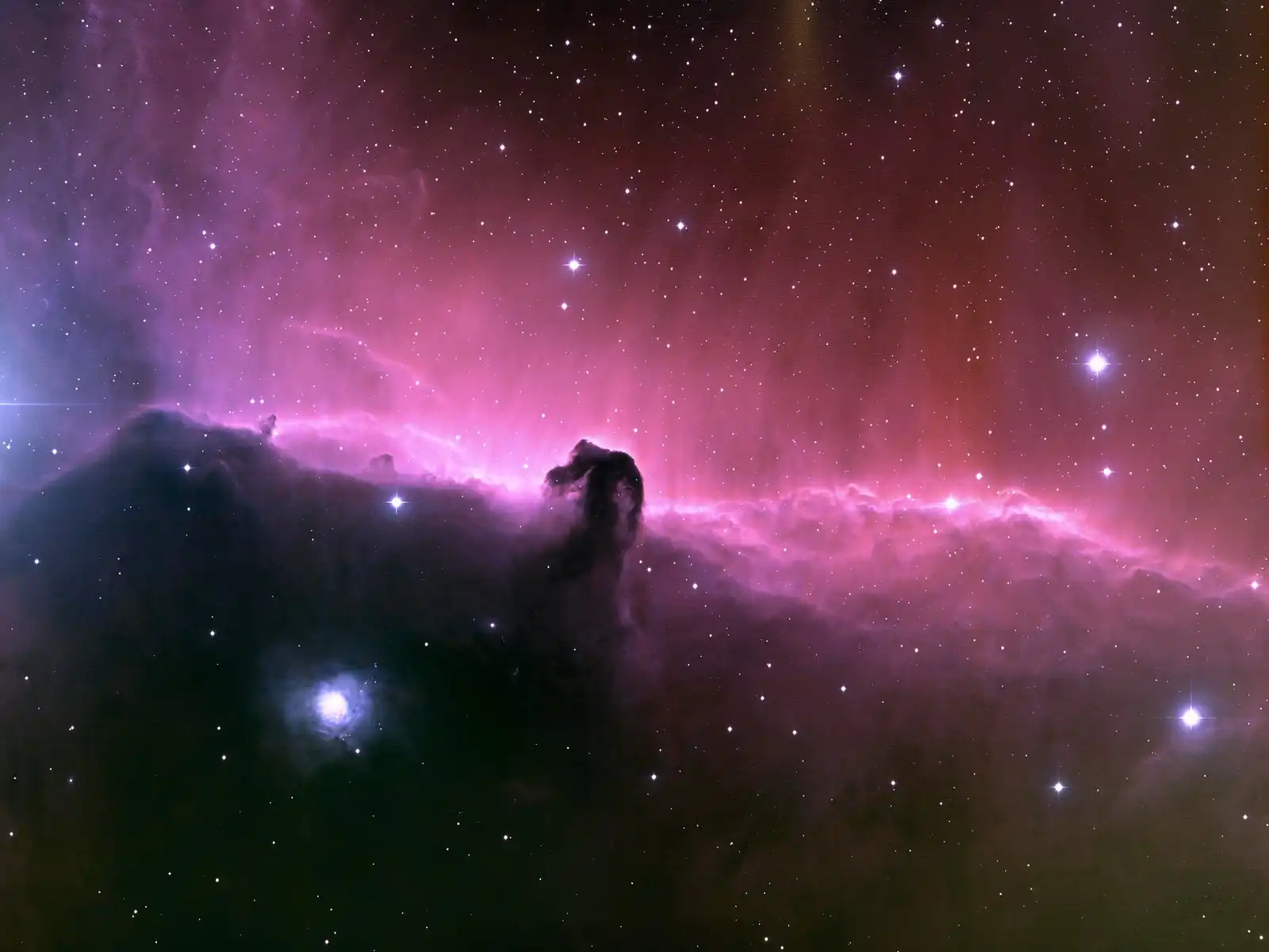 На 0,5° к югу от восточной звезды Пояса (ζ Ориона) расположилась широко известная тёмная туманность Конская Голова (B 33), которая хорошо видна на ярком фоне туманности IC 434.