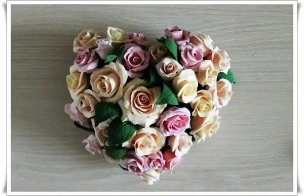 Кстати, сердце из роз необязательно нужно делать из живых цветов, есть и более простой и незатратный вариант. Вам нужно сделать основу — сердце из пенопласта. Она, опять же, может быть сплошной или с отверстием посередине. На эту основу при помощи клеевого пистолета прикрепляются засушенные розы или же розочки из лент. Дополнительно можно украсить сердце из роз ленточками, бантиками и другими декоративными элементами.