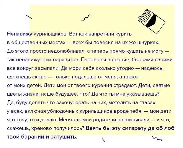 Мы производим тонны ненависти... Все что отлично от нас должно быть предано анафеме!