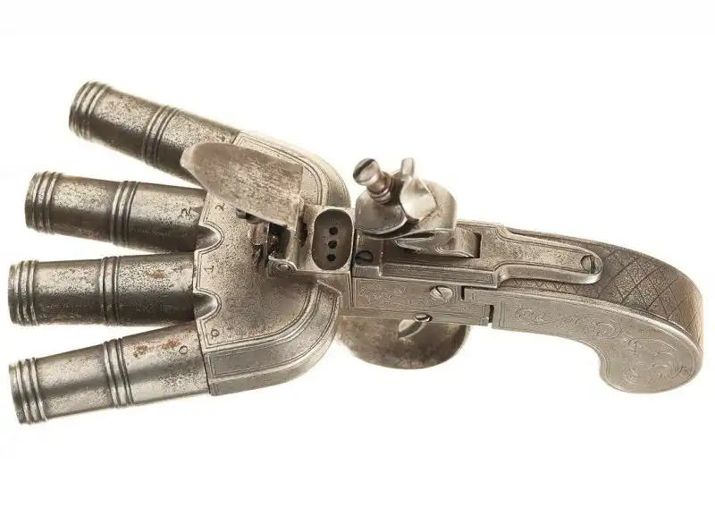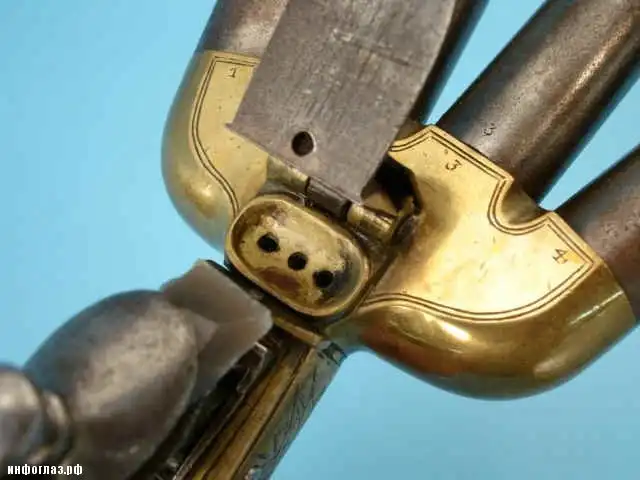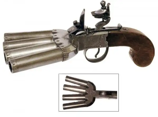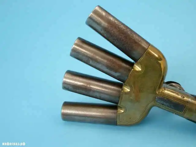Пистолет подобной конструкции, с пятью стволами в 18 веке был изготовлен и в России, получив название «рука смерти», его рисунок приведен в книге А.Б. Жука.