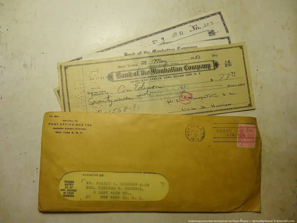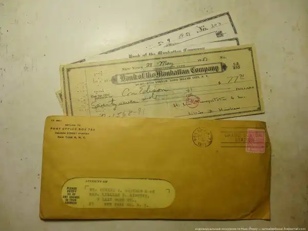 Я привез домой тумбочку, кучу книг и две коробки с документами. Сижу разбираю. Внутри накладные, декларации, банковские выписки и чеки, страховки, письма и т.п. Есть много нераспечатанных конвертов датированных 1951 годом. Напишу потом отдельный пост по тому, что нарою.