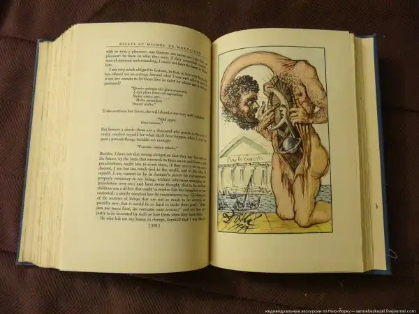 Книга почти в идеальном состоянии, а внутри действительно иллюстрации Дали. Если кому интересно, то здесь можно посмотреть все иллюстрации из этого издания.