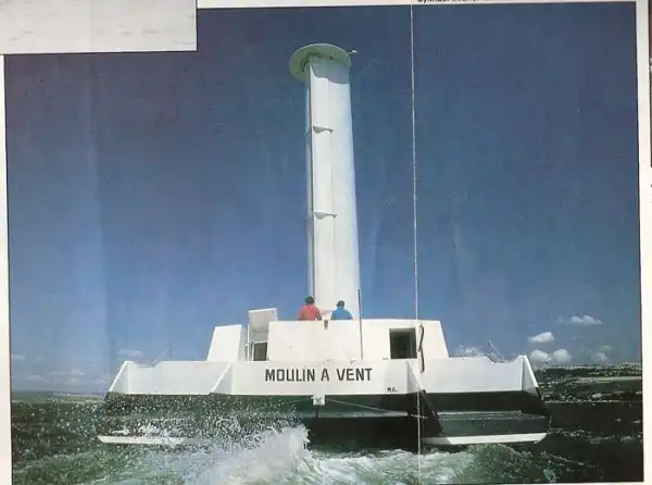 Собственно, впервые Кусто испытал прототип турбопаруса на катамаране «Ветряная мельница» (Moulin à Vent) в 1981 году. Самым крупным успешным плаванием катамарана было путешествие из Танжера (Марокко) в Нью-Йорк под присмотром более крупного корабля экспедиции.