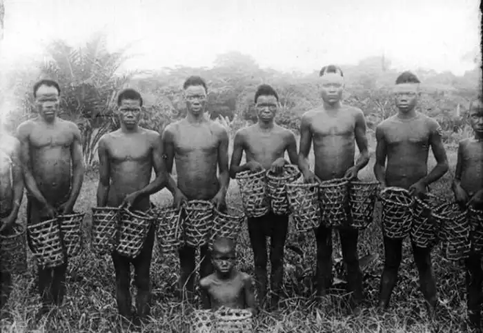 Головорезы оказались хитрее - они просто начали отрубать людям руки. В конце концов, дело закончилось тем, что отрубленные руки стали использоваться в Конго в качестве валюты. Их собирали каратели из Force Publique, их собирали мирные деревни… Если у одной деревни нормы по сбору каучука оказывались слишком высокими, она нападала на другую деревню, чтобы заплатить бельгийскому королю страшный выкуп. Пик добычи каучука в Конго пришелся на 1901-1903 годы. Именно тогда руки начали измерять корзинами. Не выполнил норму по сбору каучука? С тебя - две корзины рук.