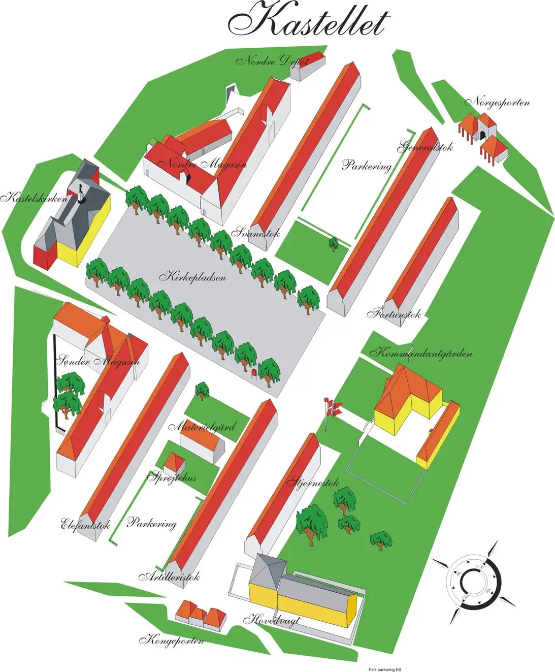 Форт ежедневно и ежечасно охраняется королевскими гвардейцами, в казармах по-прежнему живут солдаты, и доступ сюда публики ограничен. Однако все, что вокруг крепости, давно стало любимым местом отдыха копенгагенцев – прекрасным общественным парком: по контурным дорожкам Кастеллета бегают трусцой поклонники здорового образа жизни, здесь обитает много птиц, в том числе голубые сойки и белые лебеди, которых обожают кормить дети